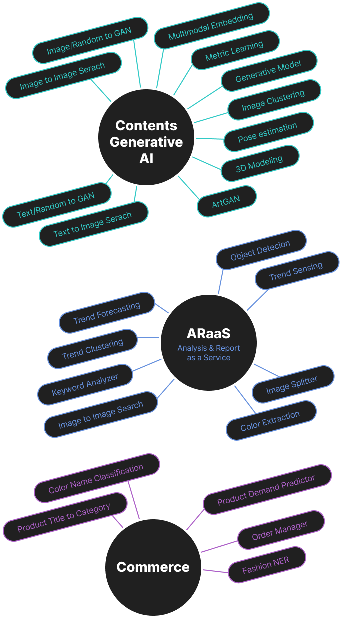 Using the core technique such as Metri Learning, Multimodal Embedding and etc, we retain the techonology to create contents that meet the user needs.