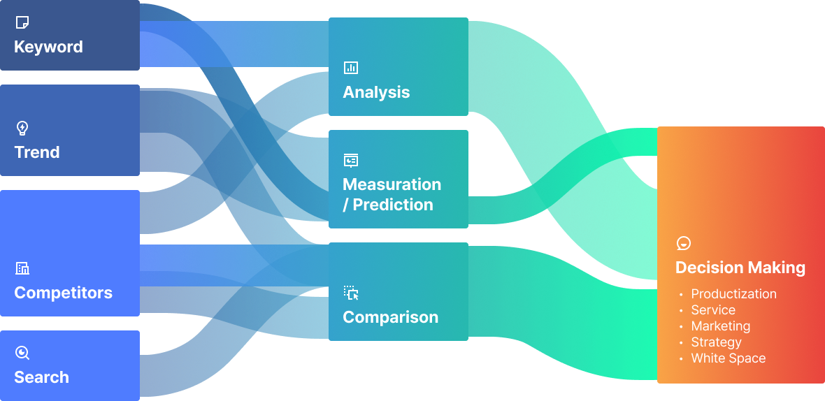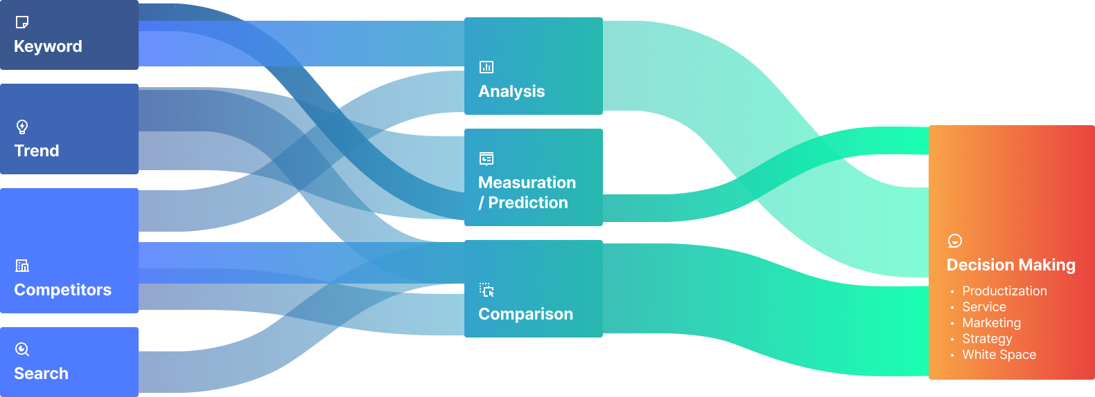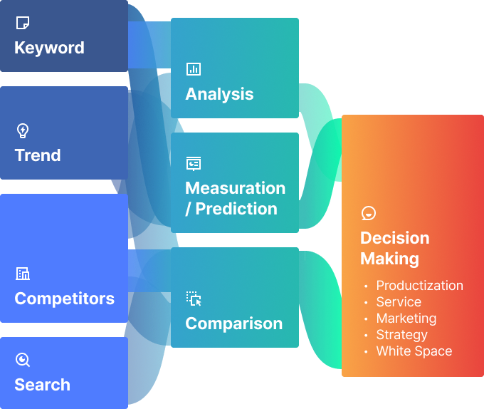Designovel provides technology of processing the crucials steps required in most of operations yet labour-intensive, which are Trend Recognition, Market Analysis, and Product/Service planning in affordable and fast ways.